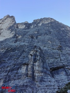 La parete Ovest della prima Torre del Camp in Moiazza è il versante più bello e compatto che si possa trovare su questa Torre.