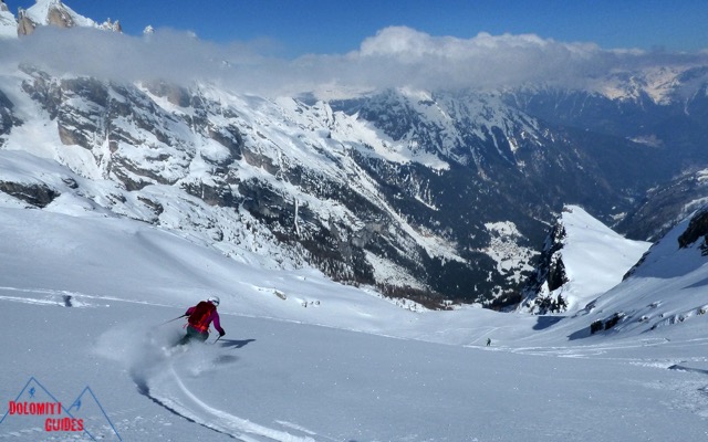 Il comprensorio sciistico di San Martino di Castrozza si presta molto alle discese di freeride e tra le molte attraversate che si possono fare dalla Cima del Rosetta questa è una di quelle più selvagge e generalmente con neve polverosa che si possono trovare.